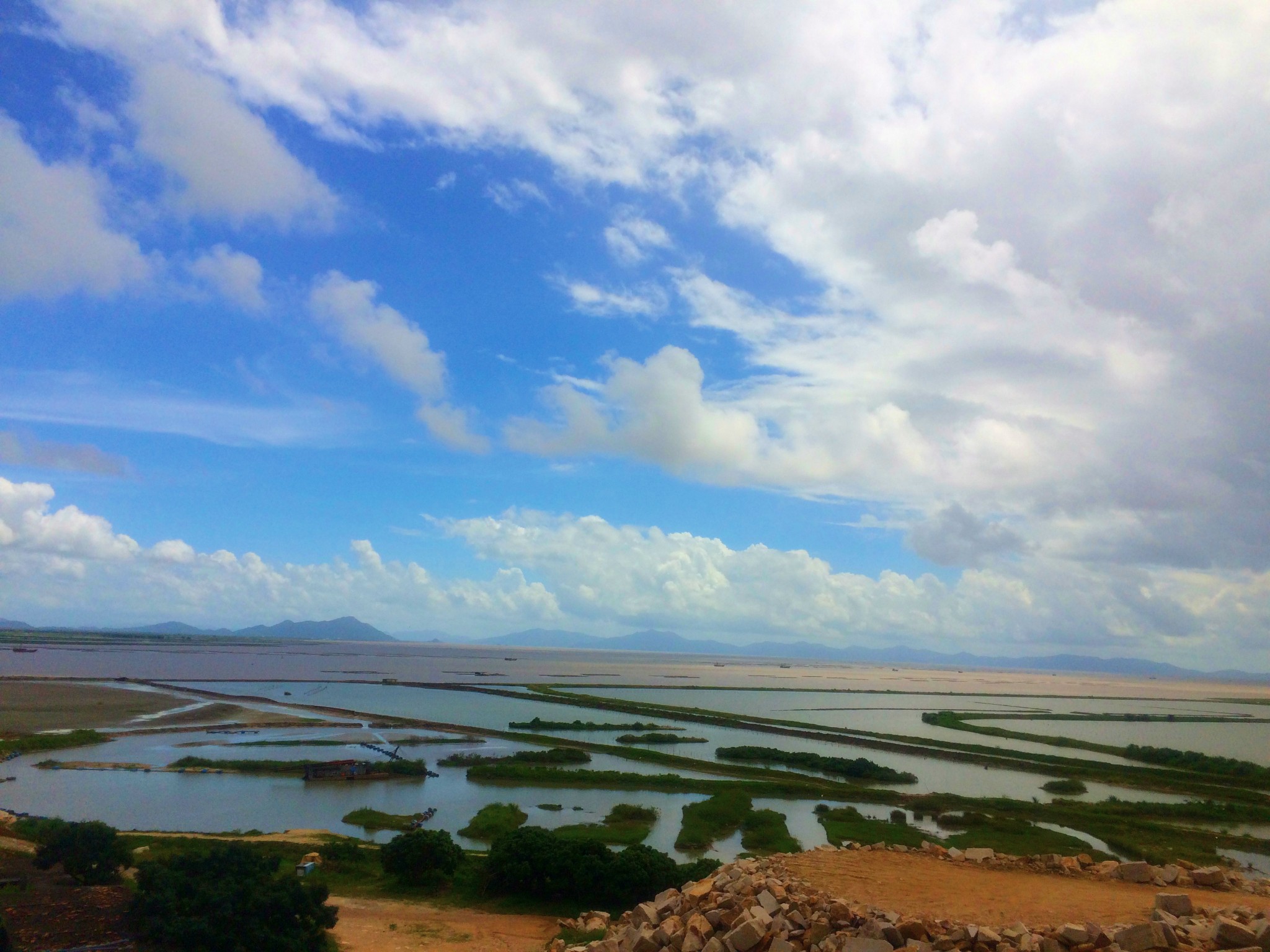 從 廣州 開車一路上的風景還是很漂亮的,去那琴半島的路上還會經過 上川島 ,開著開著就看到了一大片內海,停下車靜靜的感受一下藍天白云。