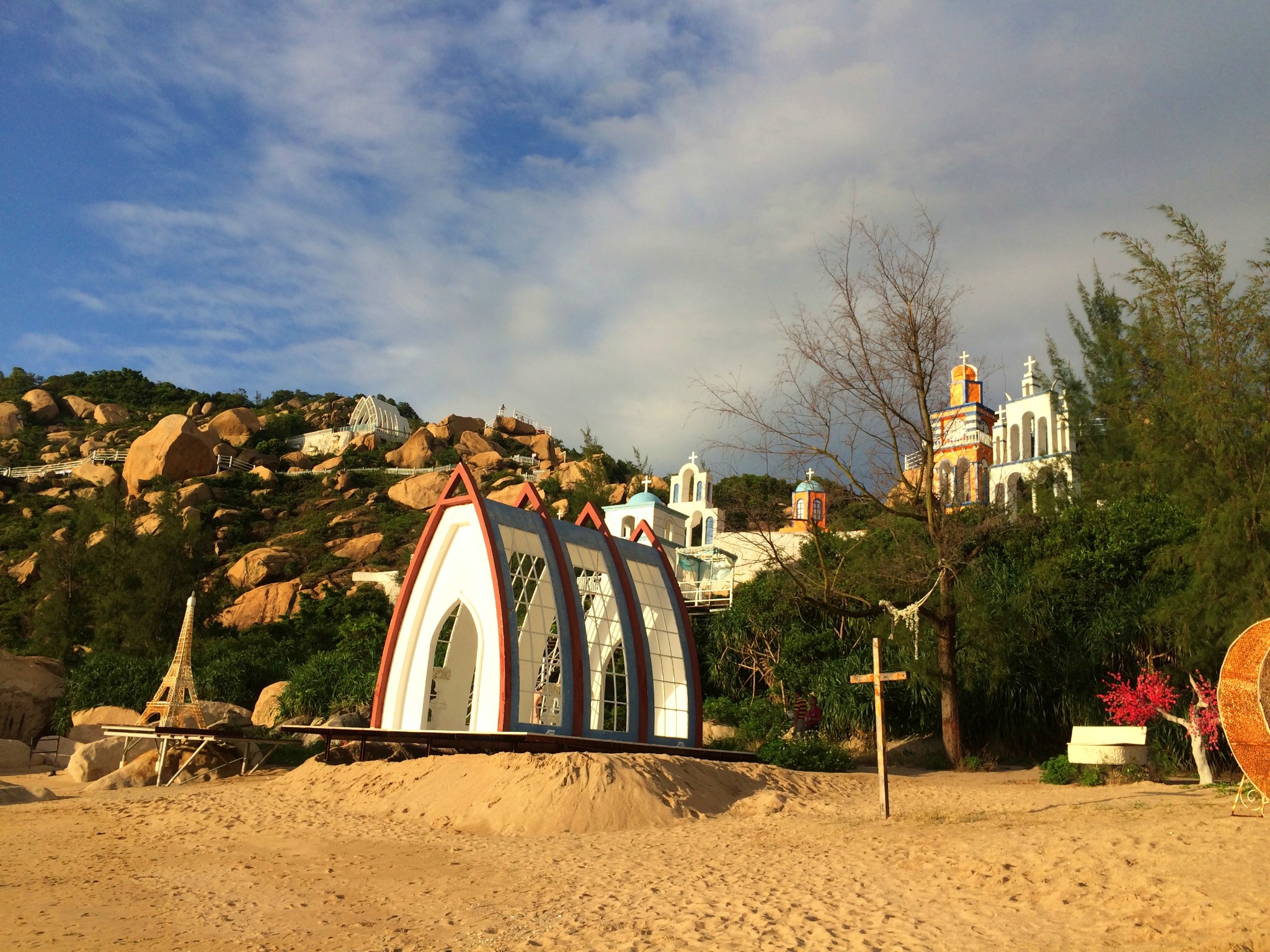 那琴半島地質海洋公園位于 臺山 市北陡鎮南部海灣上,距離 江門 市180公里,離 廣州 市280公里,那琴半島地質海洋公園海岸線全長6000多米,棧道、海灘、奇石是這里的最大特點。對于熱愛地質和旅游的人來說,非常好。這介紹好像有點太官方了,說實話那琴半島的海水并不是那么漂亮,只有幾個海灣的沙灘,但是真的很適合情侶和愛拍照的帥哥美女們去,酒店很漂亮,大大的落地窗,潔白的窗紗,躺在床上就能看見海灘,非常漂亮。
