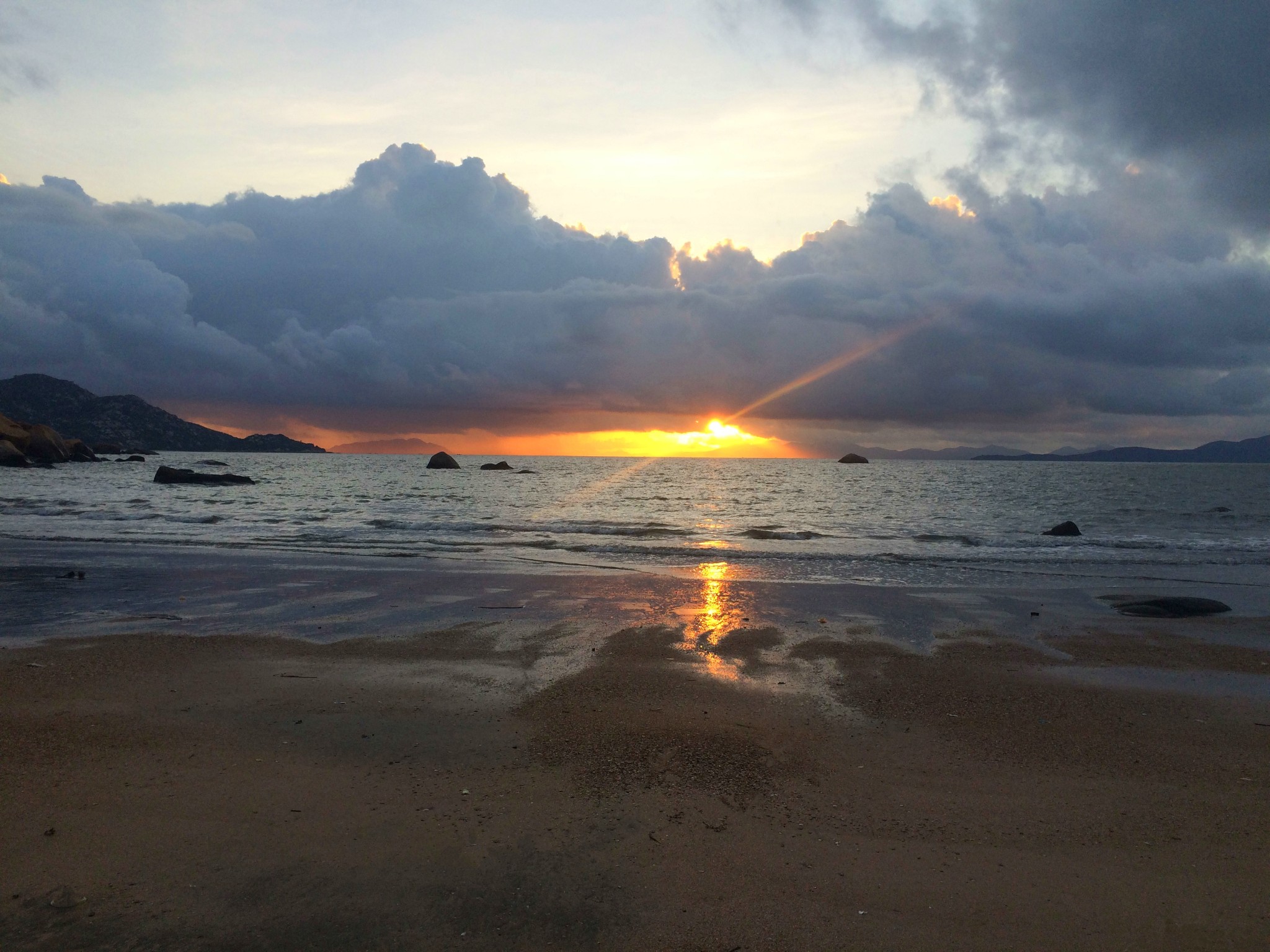 天氣沒有想象中好,云層太厚了,海還是安安靜靜的,好像睡著了一樣。只有手機拍照,日出的效果沒拿好,