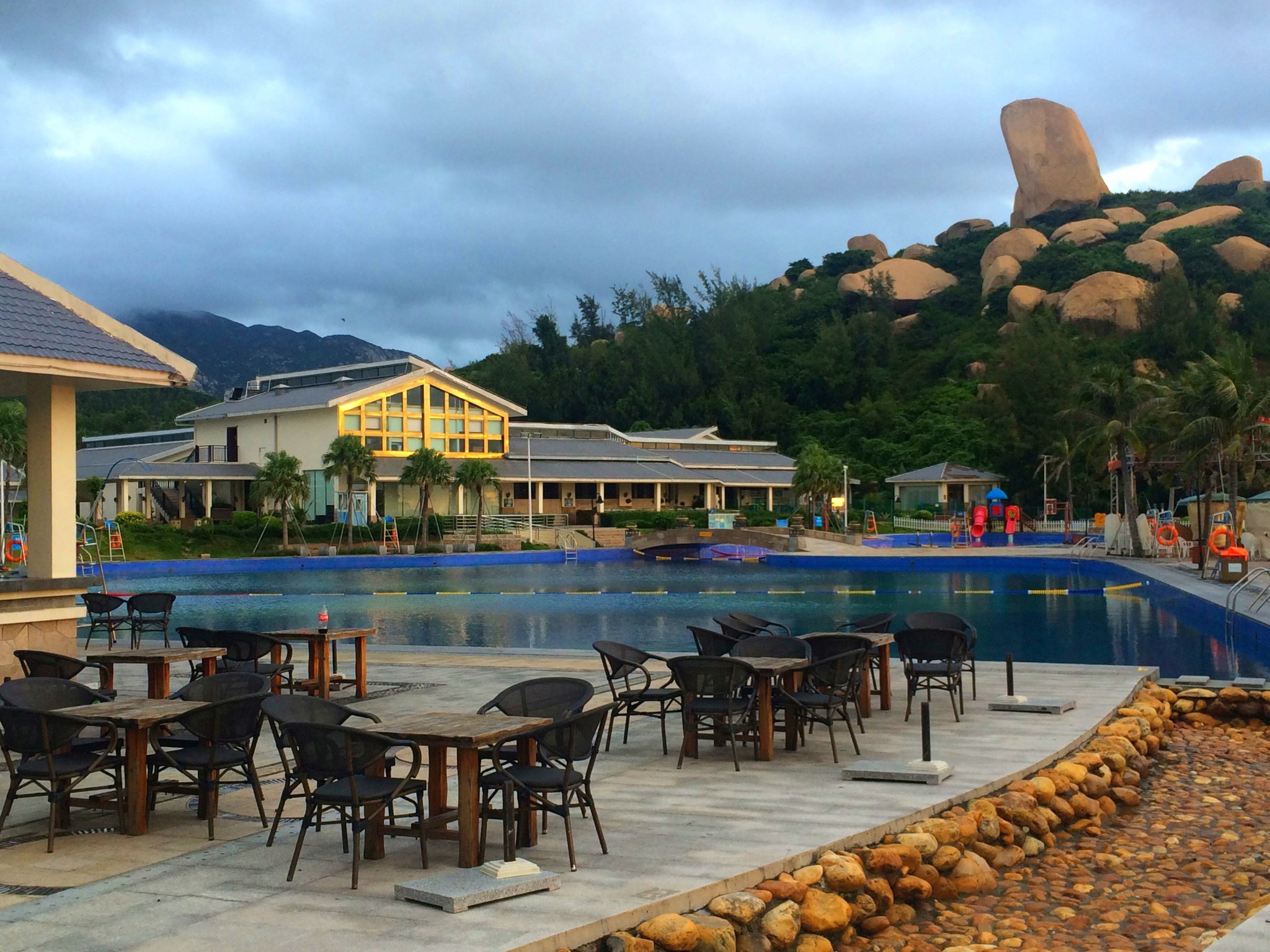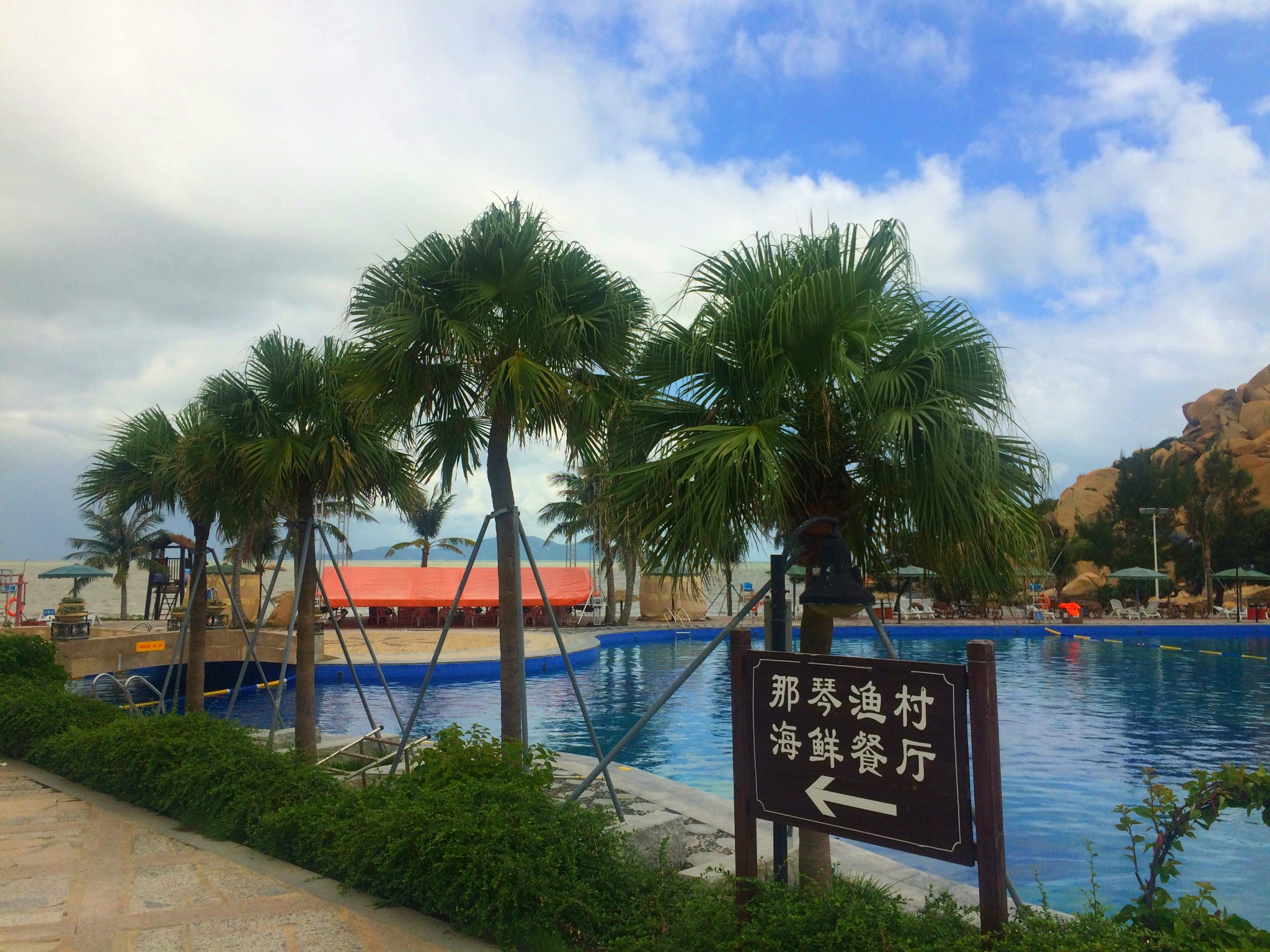 一進入酒店就看見一個大大的泳池,和若隱若現的的大海, 酒店的環境很漂亮,海灘幾乎被酒店全包了。酒店里有游泳池,還有個小小的兒童水上樂園,不過酒店的游泳池是咸水。