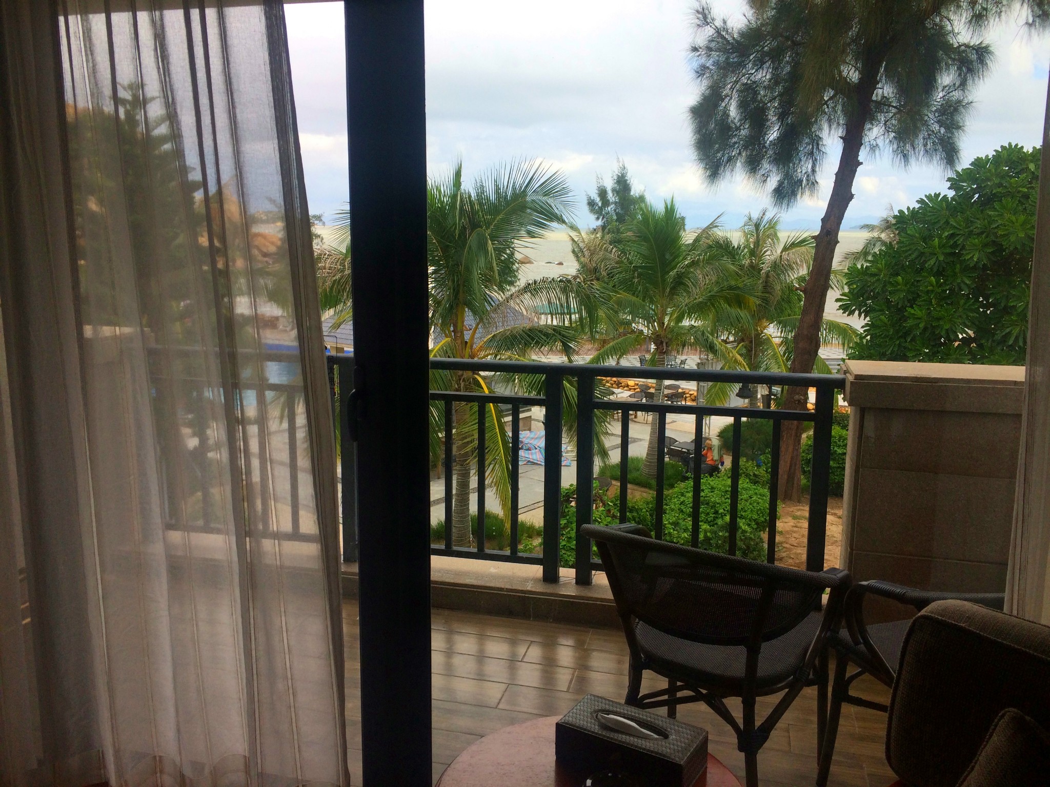 那琴半島地質海洋公園酒店房間里有一個大大的陽臺,陽臺上就可以看見海,我們定的房間是豪華海景房,豪華海景是在二樓,有陽臺可以直接看海,高級海景在一樓,只有一個大大的落地窗可以看海,二樓相對來說會比較安靜有私密性一點。酒店的房間相對來說有點貴,豪華海景房一晚上要1000左右,國慶可能還會更貴吧,還好我錯過了人群也錯過了漲價。