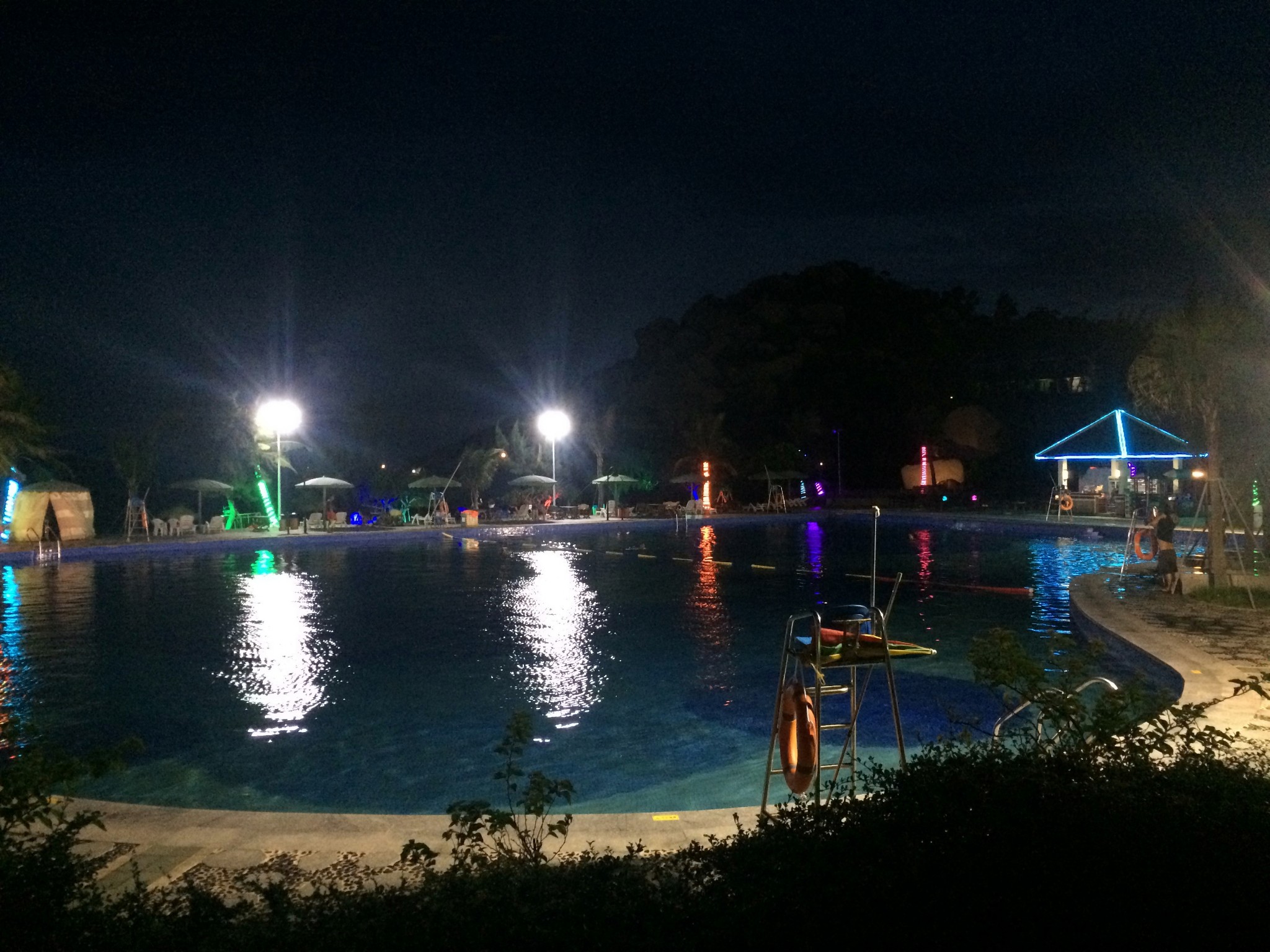 夜晚的天空很漂亮,還可以看見星星,好久沒有見到那么多閃閃發亮的星星了。太陽終于落山了,我可以去泳池游泳了。不用擔心曬黑了